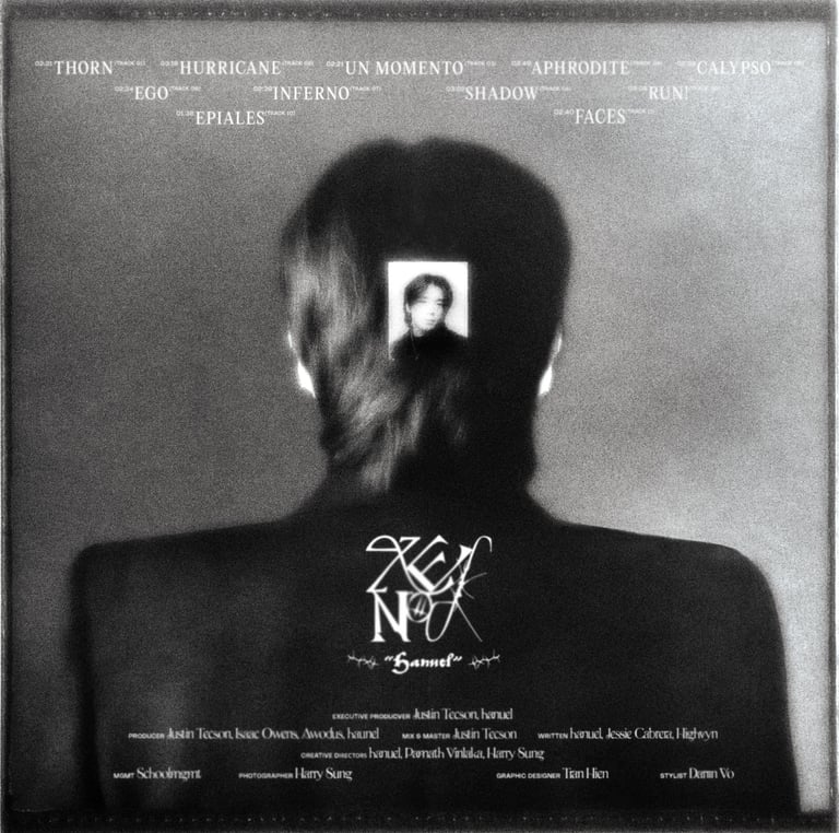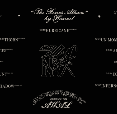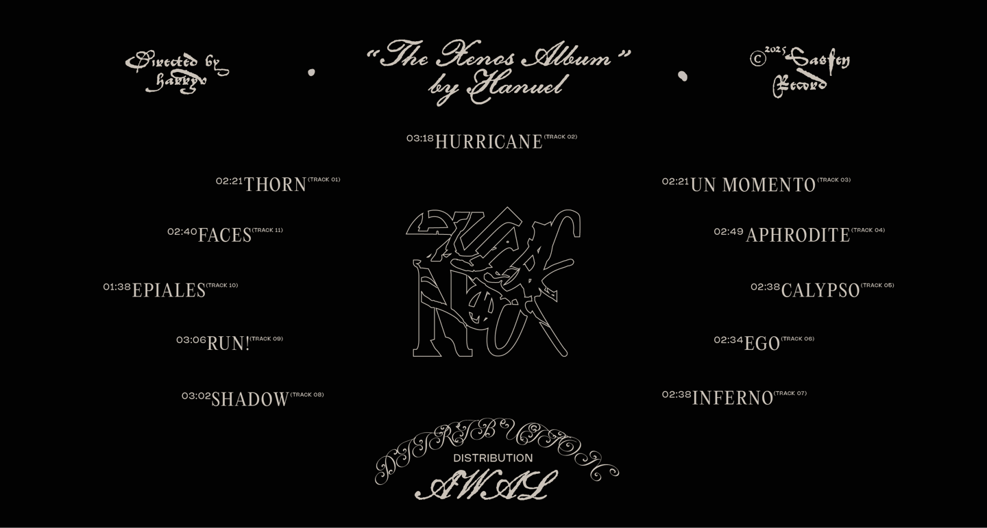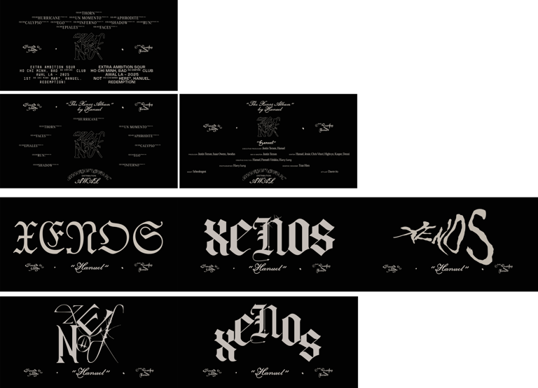 Album visuals for Hanuel — exploring multiple layouts and title treatments.