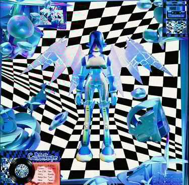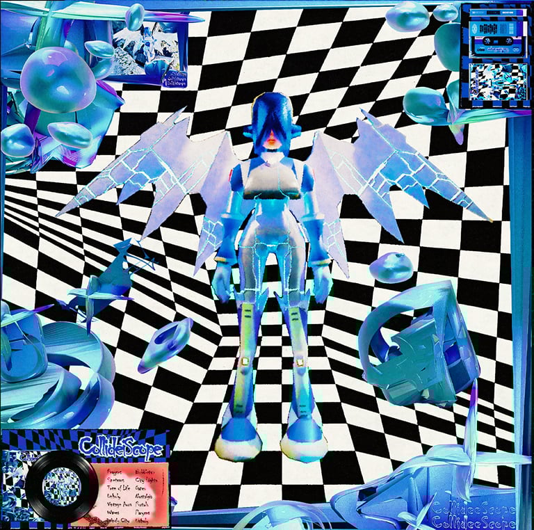 Collideiscope Cover art is a sound kit made with an analog lab, to create various styles like lunchbox, domcorleo, Hardrock, Rollin Thrax, Yeat, Destroy Lonely and more. Therefore, I use Y2K images and mixed media art for the cover art to represent the music genres that the artist produces.