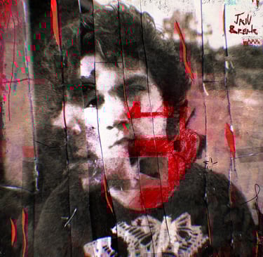 I predominantly create dark mixed media cover art through a hands-on approach, combining traditional drawing techniques with experimental methods like spray painting, acrylics, and paper cutting to achieve a unique aesthetic.